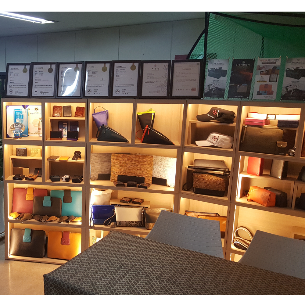 We are building differentiated image and brand recognition in the industry through unique design and functionality, high quality of 100% Korean leather products and reasonable prices through direct manufacturing (production). HENDON has a lot of patents and utility models through continuous research and development with emphasis on the function and ease of use of the product as well as the design. In 2015, the tablet pouch of our company was selected as the best new product of Korea in 2015 hosted by Korea Daily. It was selected as the best company in the consumer satisfaction index in 2017 in fashion accessory business (leather goods) division hosted by Hankyung Business.
